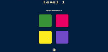 The game starts with a simple one-color pattern. Watch carefully as one of the four colored squares lights up. Then click that same square to repeat the pattern. If you get it right, the game adds another color to the sequence. Now you must remember and repeat both colors in order. The pattern keeps growing longer with each successful round, challenging your memory more and more!