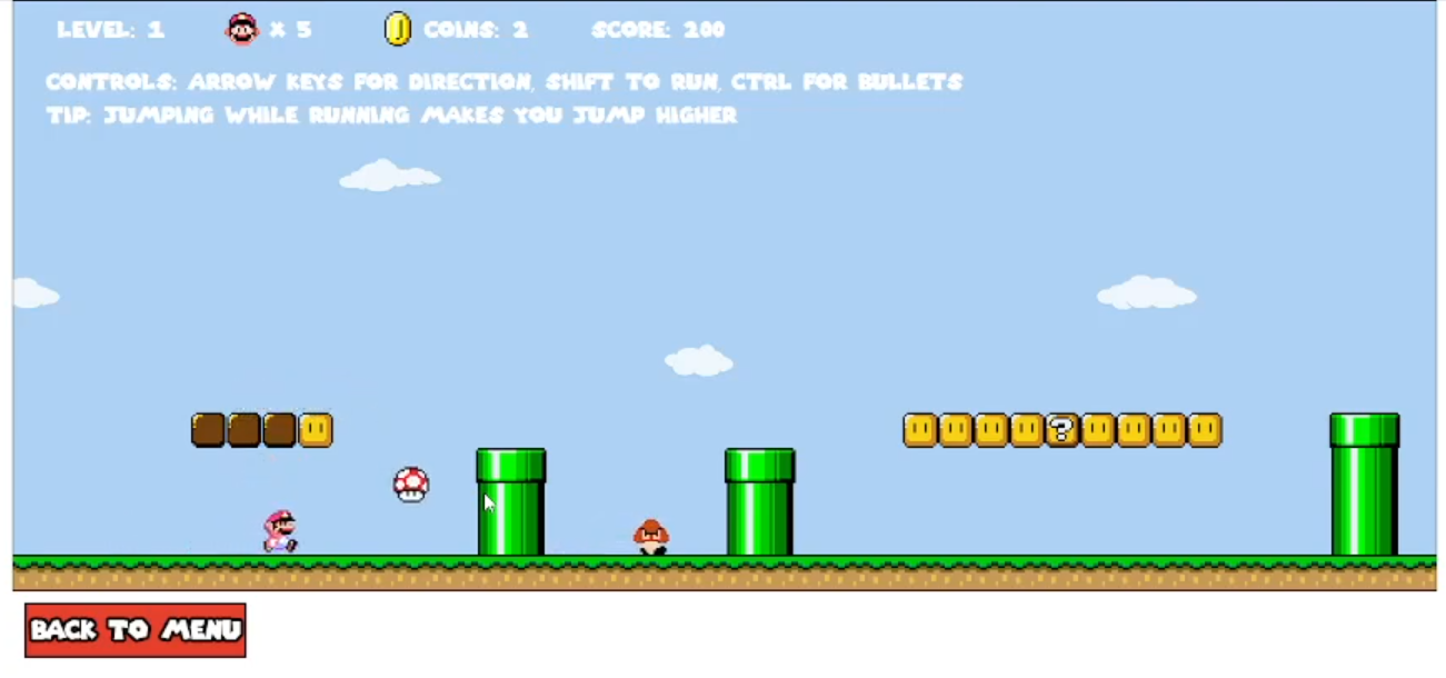 Jump into this classic browser-based platformer that brings the nostalgic Mario experience right to your screen! This game was created as a learning project to showcase fundamental game development mechanics and platformer design.